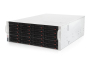Сервер имеет 24 корзины для установки жестких дисков, которые работают под управлением высокоскоростного RAID-контроллера, а также поддерживает возможность подключения внешних дисковых массивов.