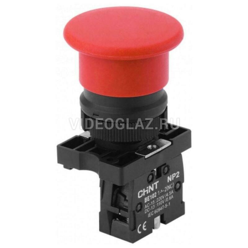 Кнопка управления "Грибок" d40мм (2) с самовозвратом NP2-EC42 без подсветки красн. 1НЗ IP40 CHINT 574820
